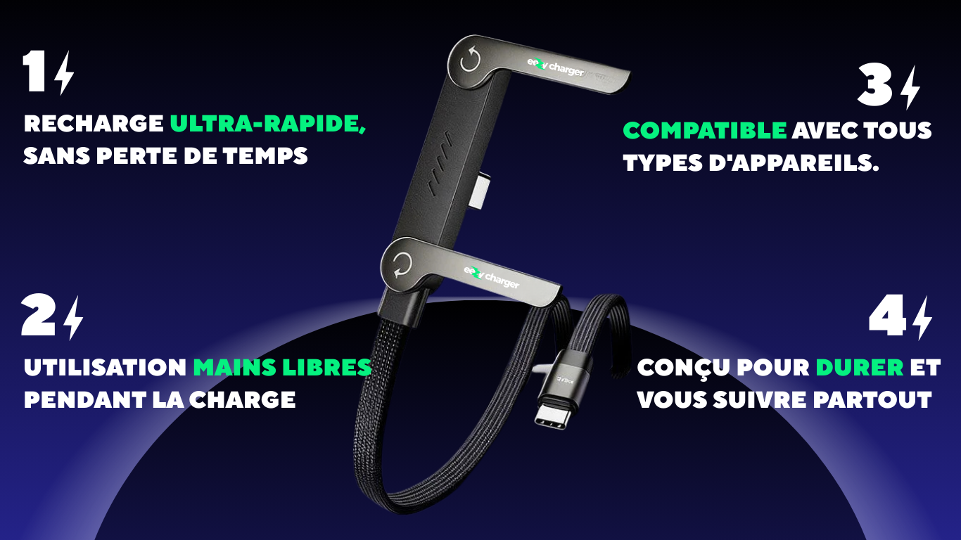 Essayez EezyCharger 30 jours gratuitement, découvrez la puissance d’une charge ultra-rapide. Vous avez la possibilité de le retourner et vous recevrez un remboursement intégral.